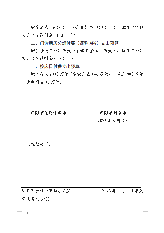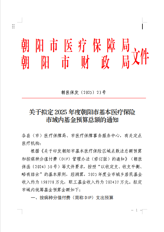 朝医保发〔2025〕23号 关于拟定2025年度朝阳市基本医疗保险市域内基金预算总额的通知