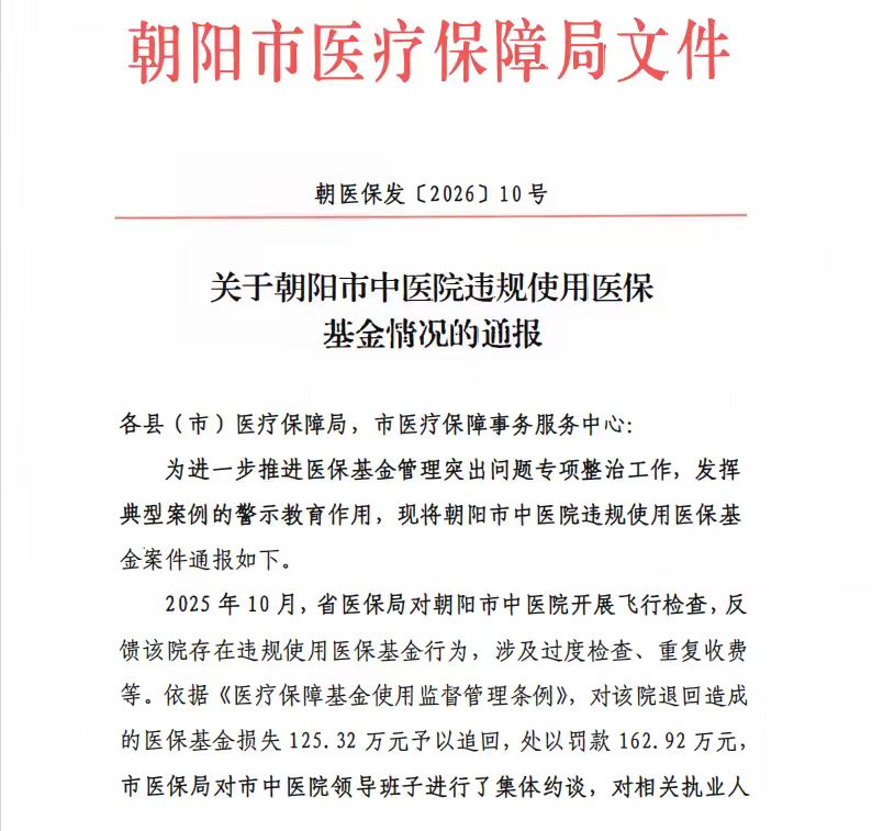 朝医保发〔2026〕10号 关于朝阳市中医院违规使用医保基金情况的通报